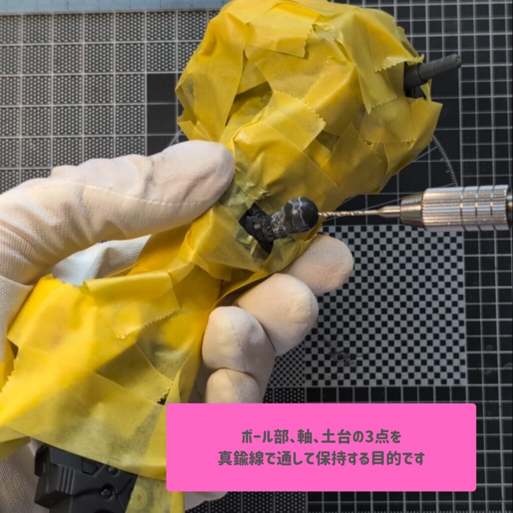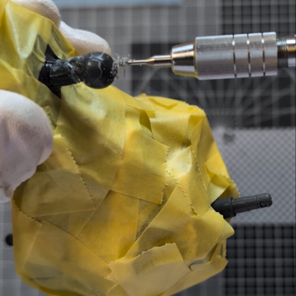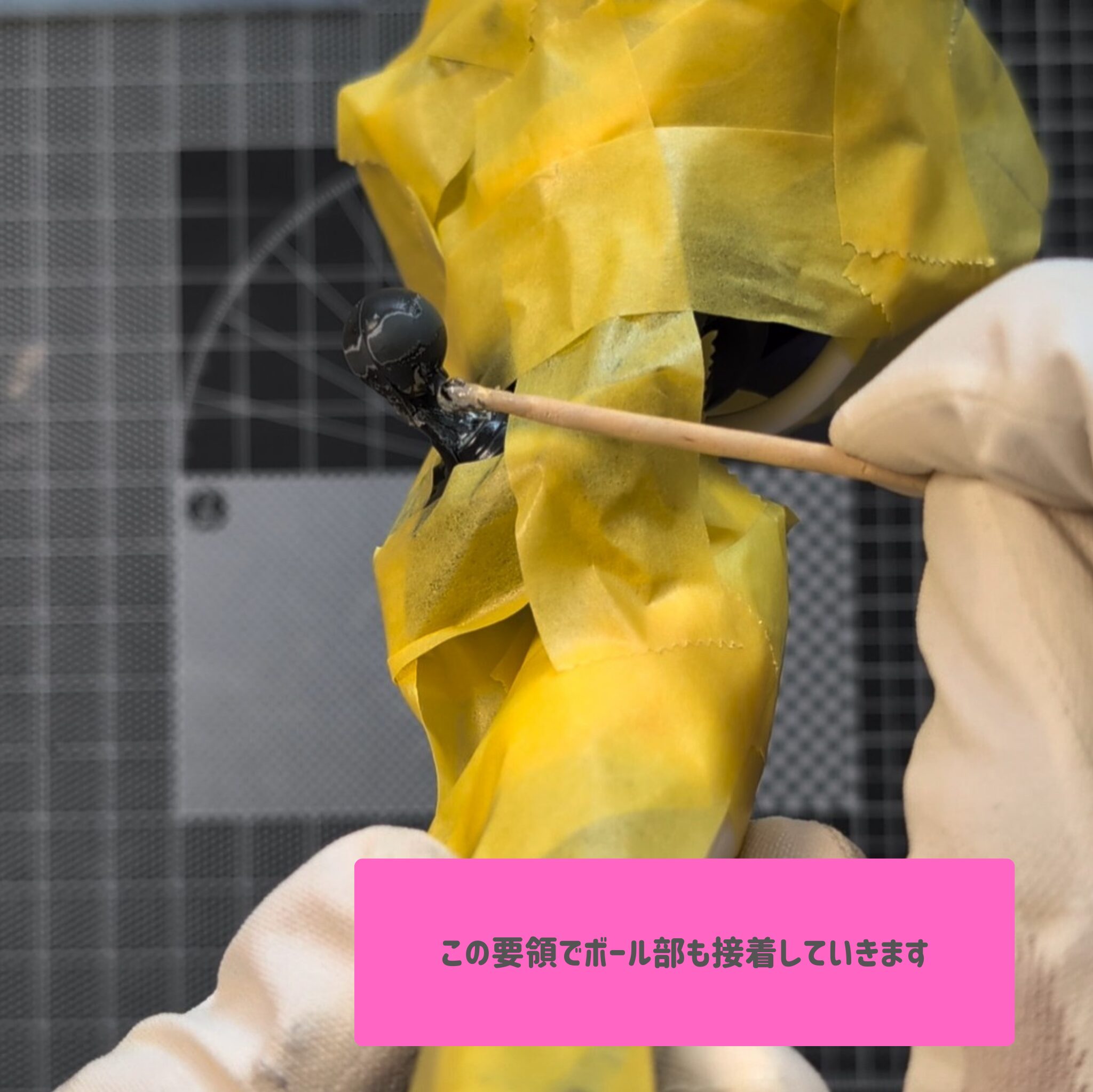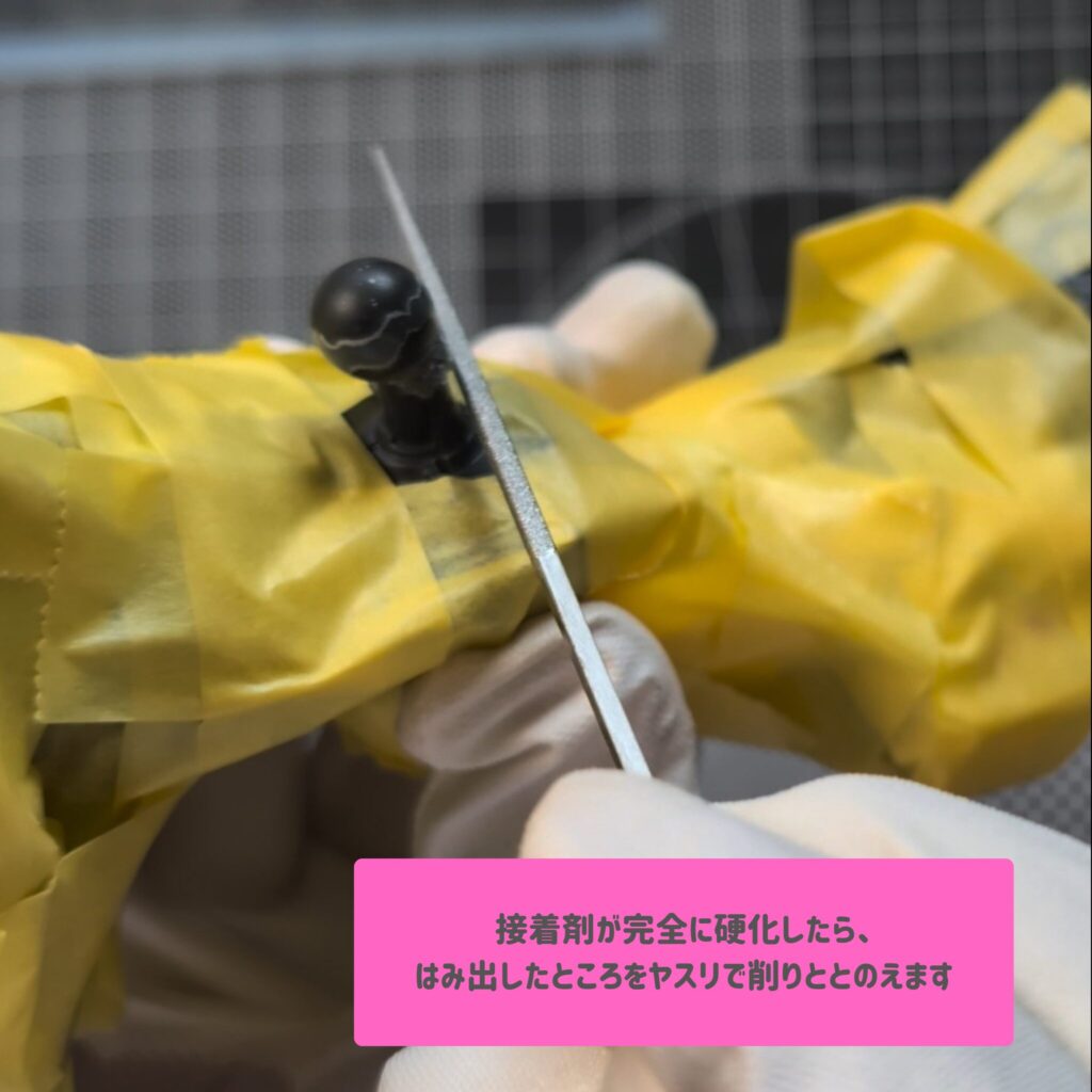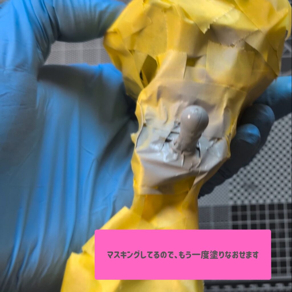 このため、ボールジョイントのボール部はサフや塗装時マスキングテープで覆っておくのが王道です。今回はこれをサボってしまったのですね。