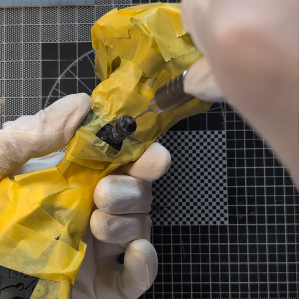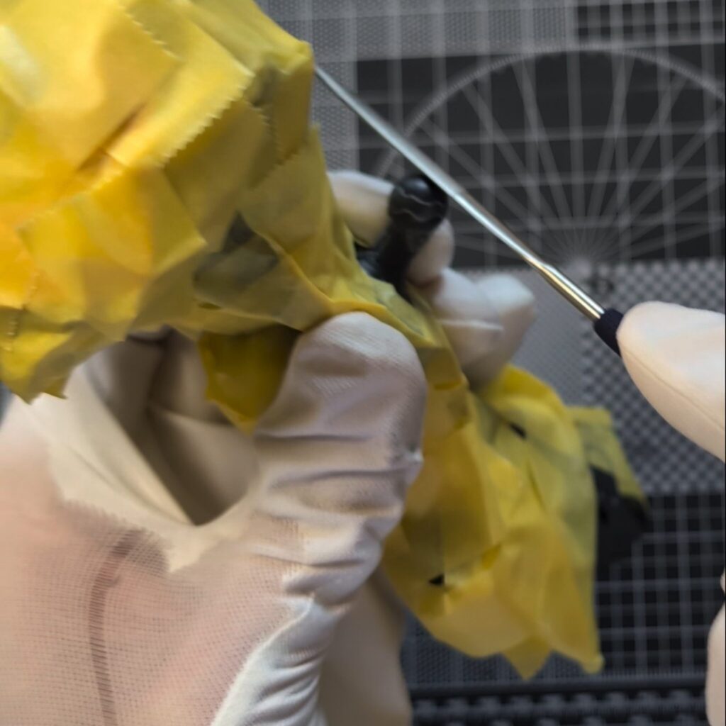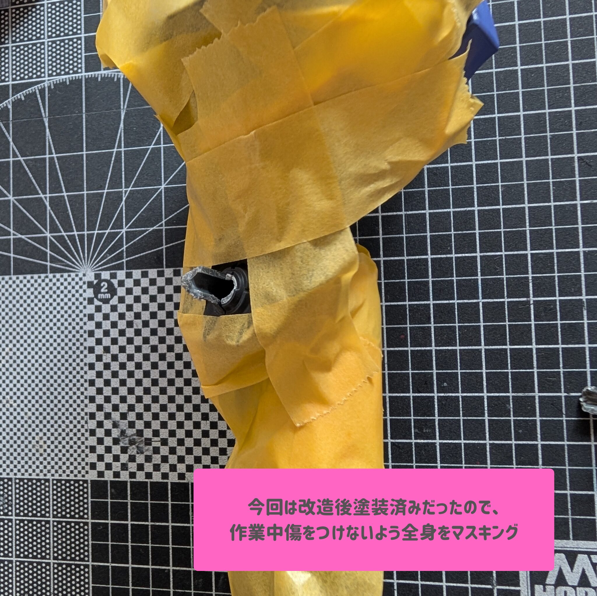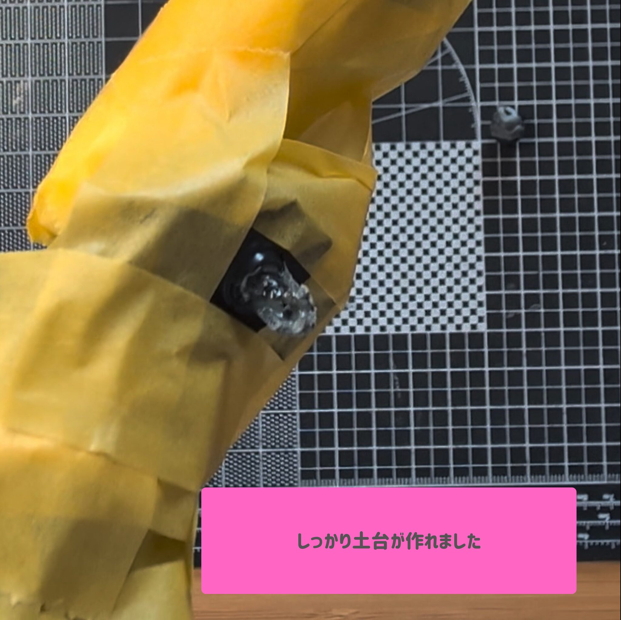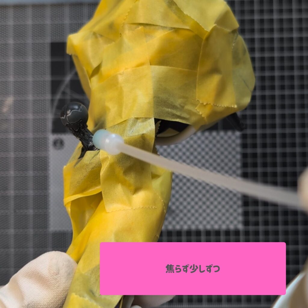 このため、ボールジョイントのボール部はサフや塗装時マスキングテープで覆っておくのが王道です。今回はこれをサボってしまったのですね。