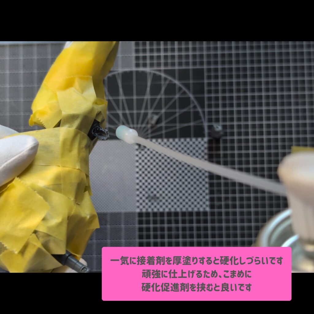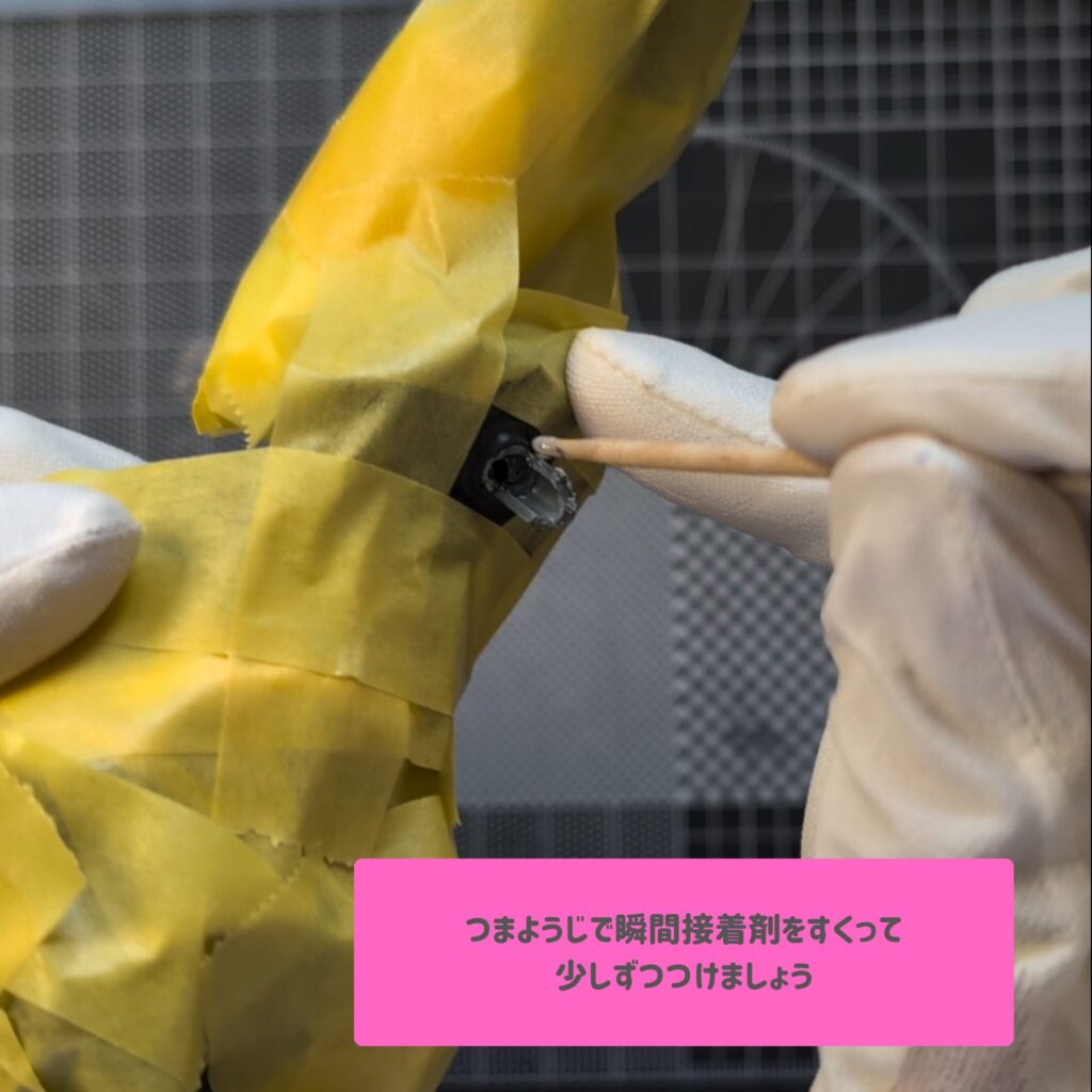 ポイントとしては、つまようじですくって少しずつ接着剤を塗布すること。