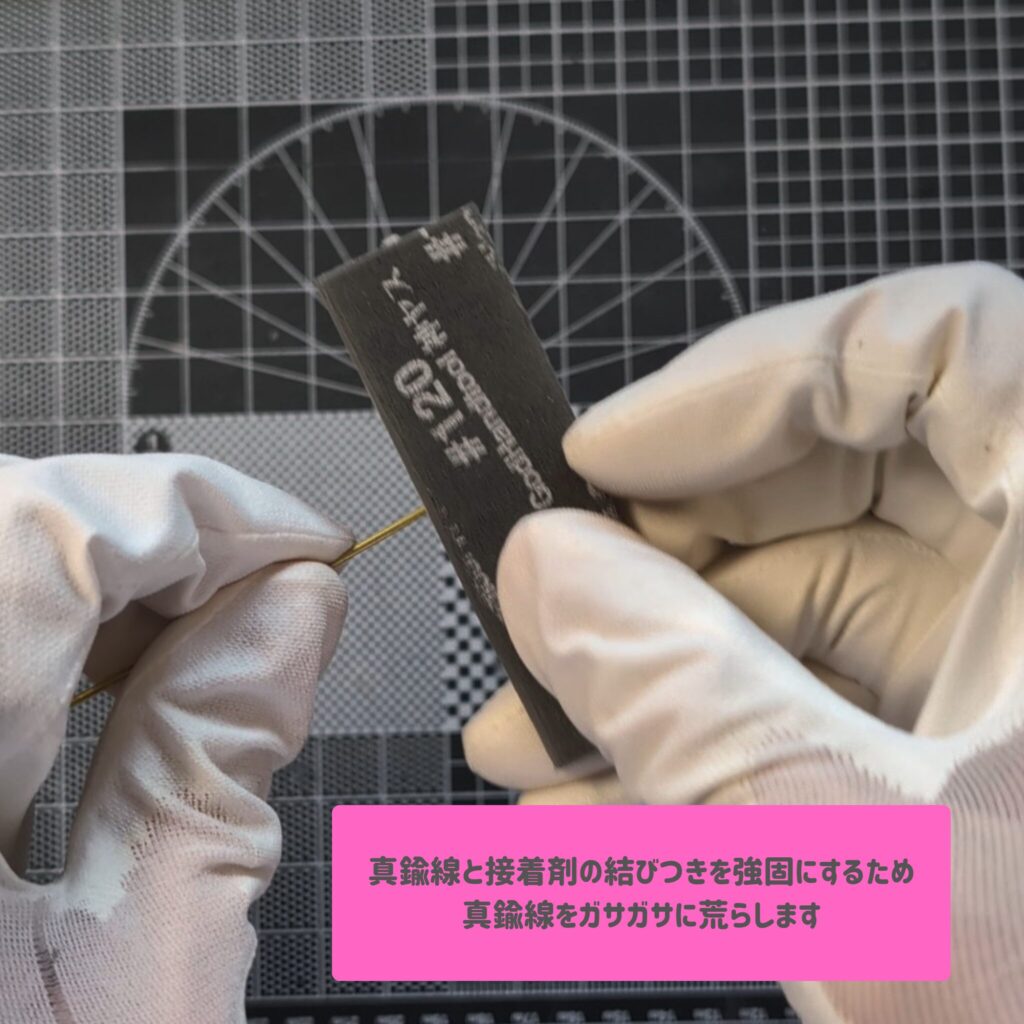 真鍮線は表面を荒れさせることにより、より接着剤との接着度合いが増します。
