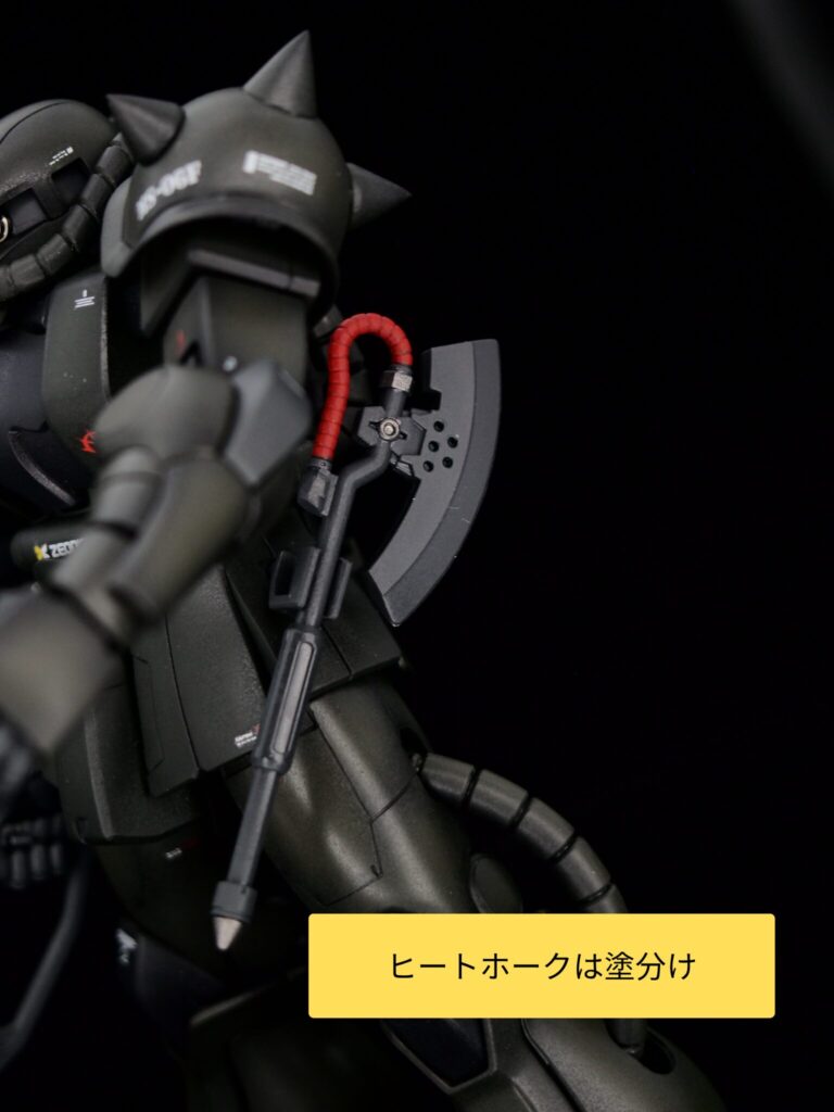 ヒートホークは塗り分け。兵装類は少し塗り分けるだけでも細密さがかなり変わってくるため、おすすめです。