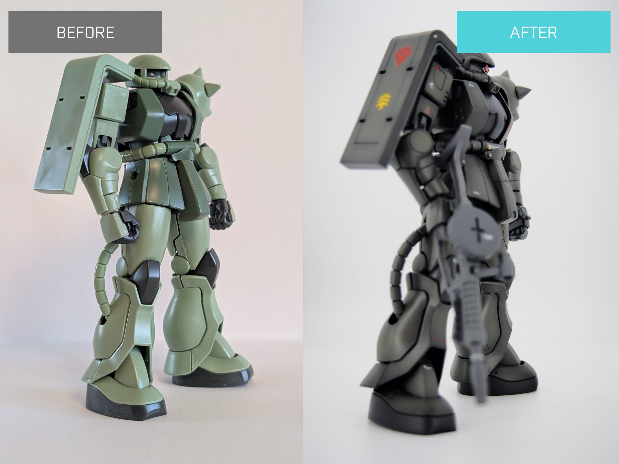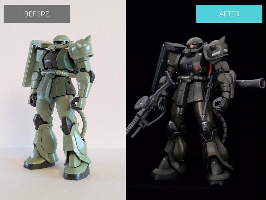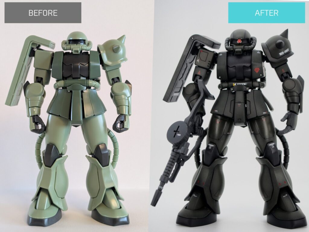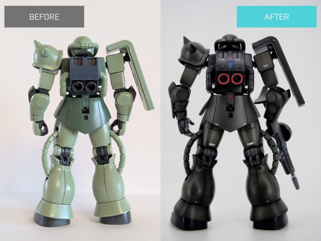 前回シャア専用ザクを製作した際は、シンプルな素体を生かした作りにしようという方針で改造していきました。